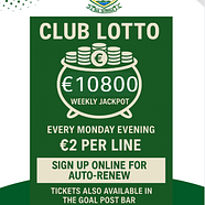 CLUB LOTTOMonday 22nd April 2024Jackpot - €11,400Paper entries can be dropped to the club duri...