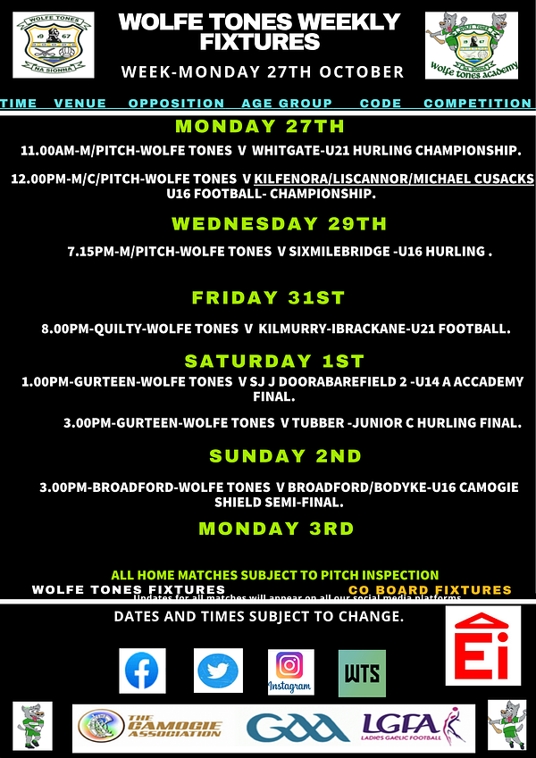 Fixtures-Week 3rd November