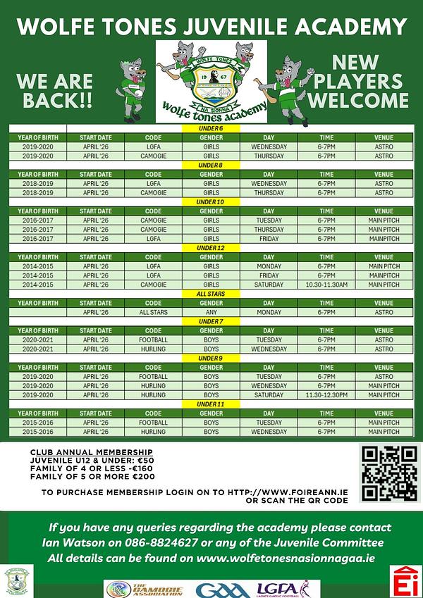 All details can be found on www.wolfetonesnasionnagaa.ie
